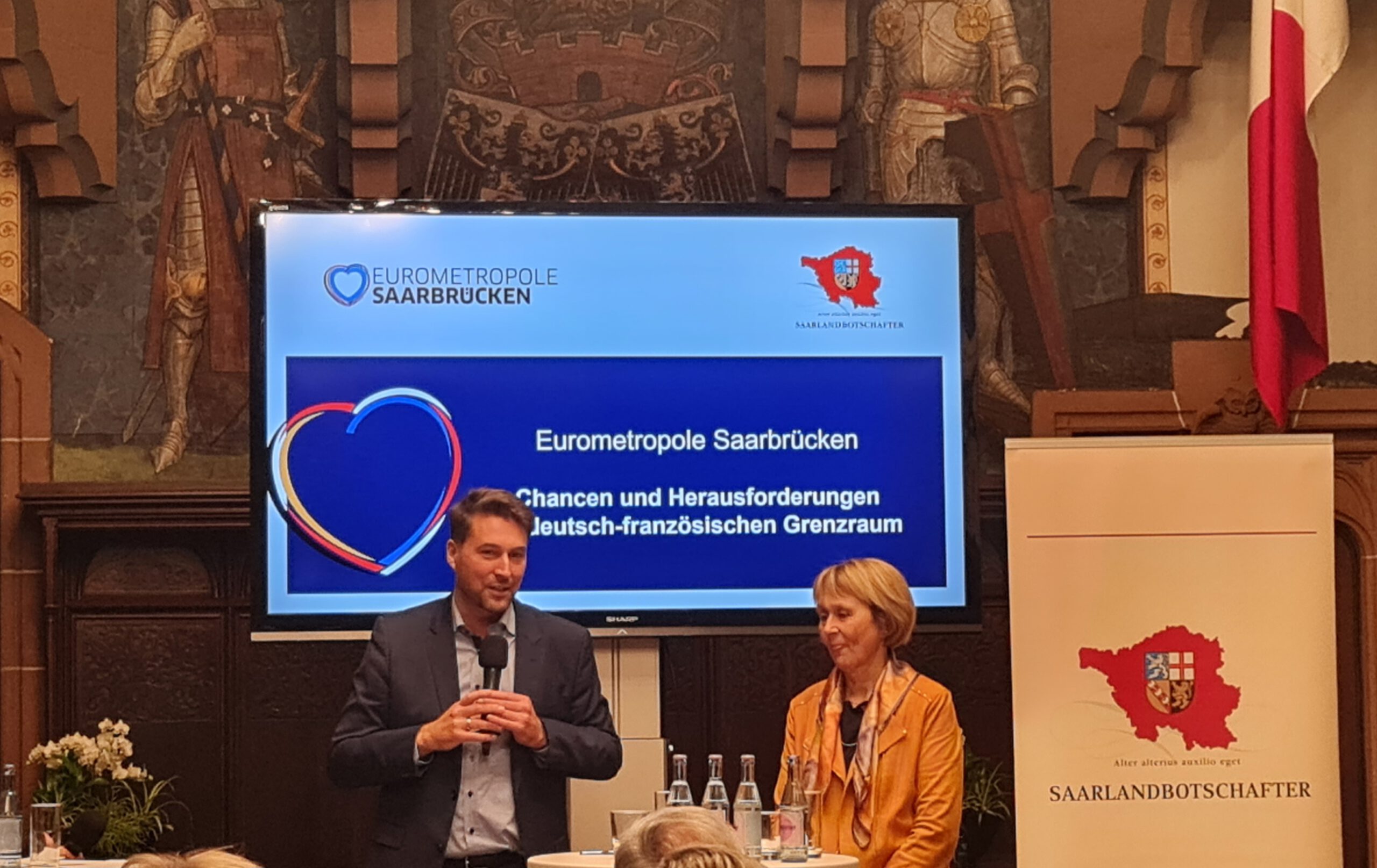 Präsenz gezeigt. Die im Festsaal des Rathauses St. Johann von der Landeshauptstadt Saarbrücken gemeinsam mit den Saarlandbotschaftern ausgerichtete Veranstaltung bildete den inhaltlichen Auftakt für die weitere Diskussion über die Entwicklung Saarbrückens zu einer deutsch-französischen Eurometropole.